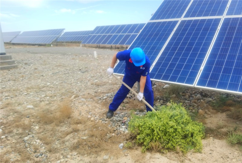 隨著雨季的到來,嘉峪關電站升壓站和光伏廠區內雜草生長較快,為避免雜草生長過高遮擋光伏組件引起熱斑效應以及影響發電量,防止對升壓站設備安全運行造成隱患,7月5日,電站決定組織全站人員對升壓站和光伏廠區開展除草工作。
